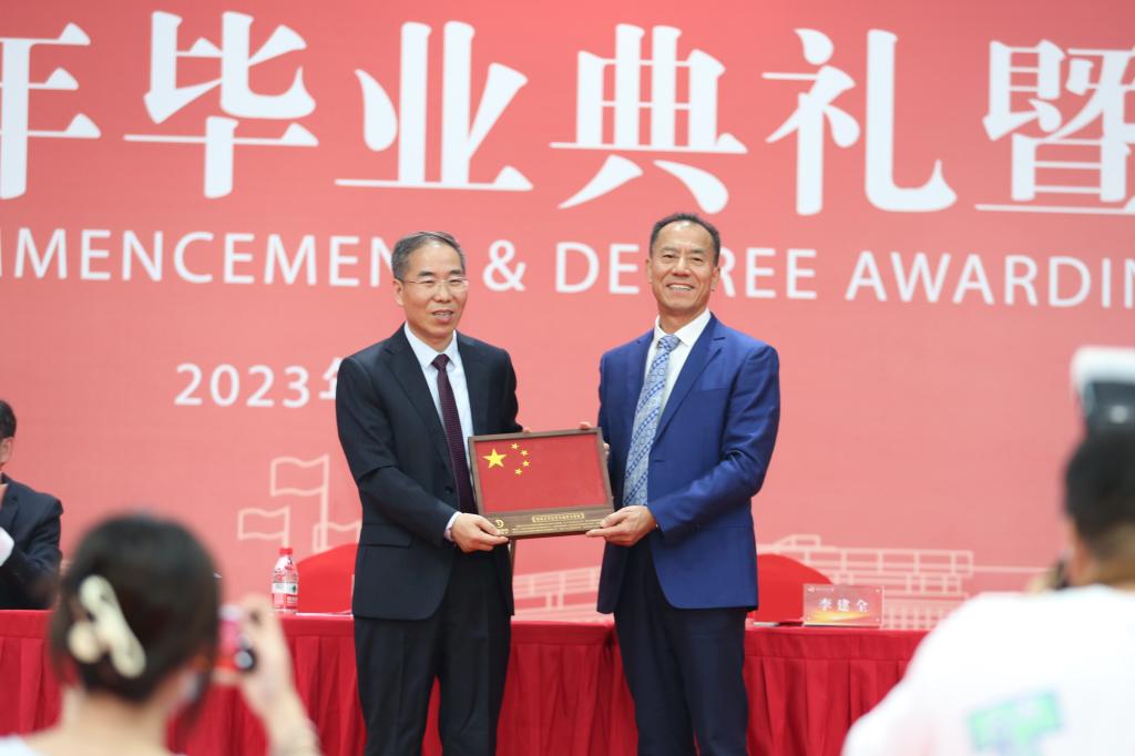 党委副书记黄国辅,副校长唐敏、姜明华、冯军、傅欣,党委常委金艳、王栋宣读相关文件,党委副书记、副校长罗锦银主持毕业典礼,副校长姜明华主持学位授予仪式