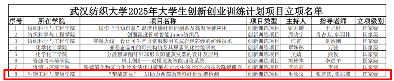 张兆威院长与张若筠老师担任指导教师。该项目在武汉纺织大学2025年大学生创新创业训练计划中,成功斩获国家级立项。